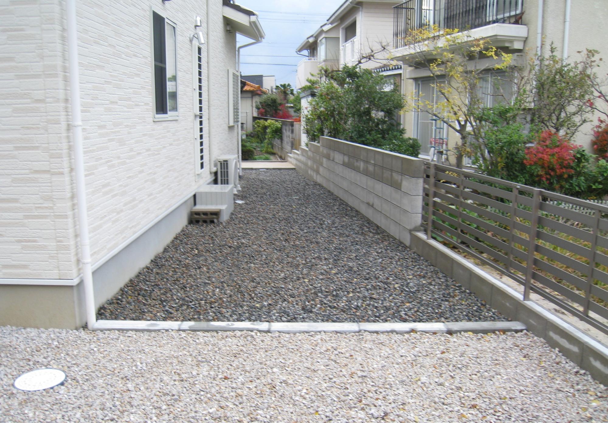 砂利は芝生やコンクリートに比べ安価に施工できます。砂利を防草シート込みで1平米あたり5,000円とすると、土間は10,000円、天然芝は13,000円、人工芝は18,000円ほどのコストが掛かります。砂利はコストを抑えたお庭づくりに砂利は欠かせない素材です。