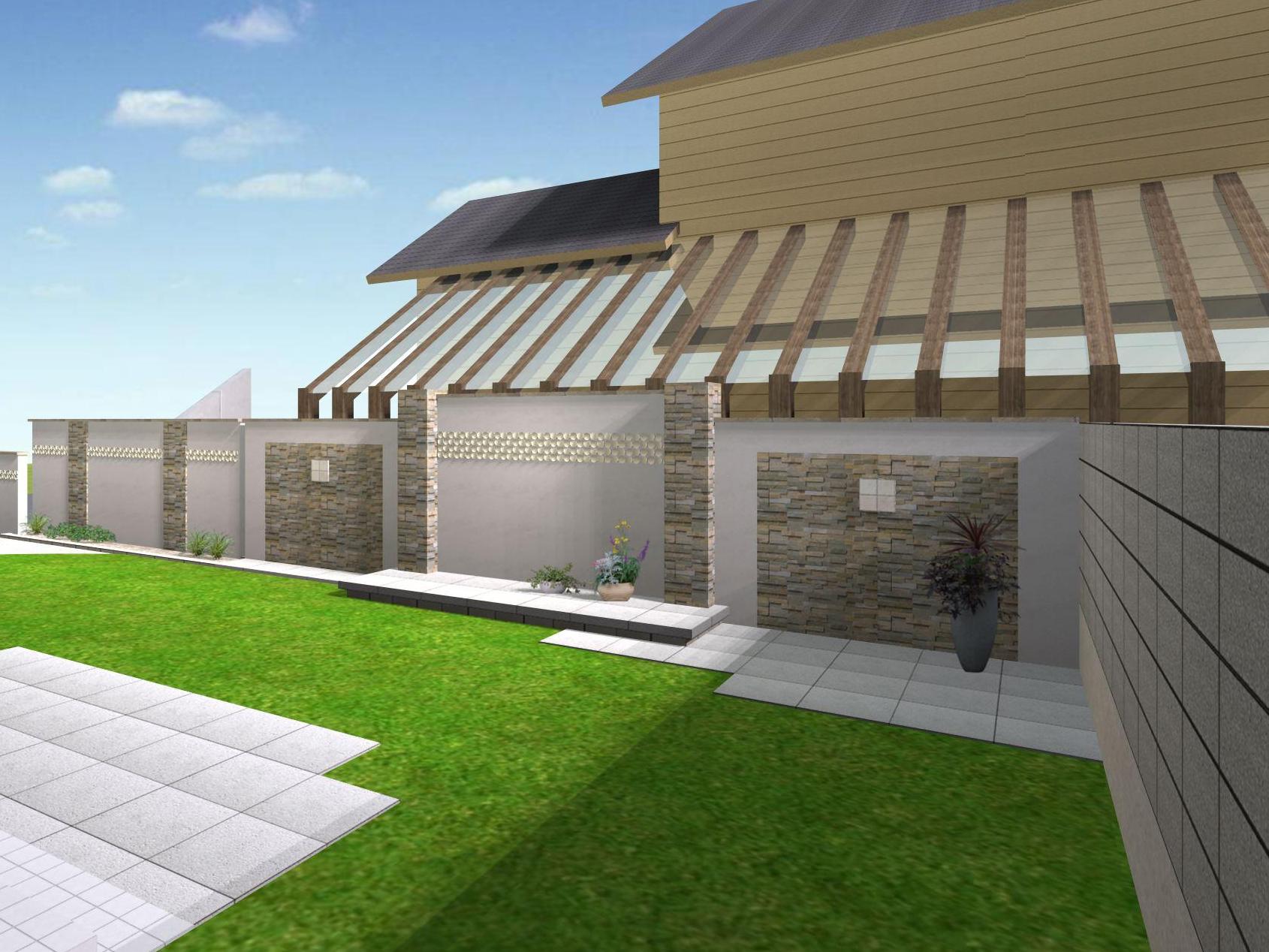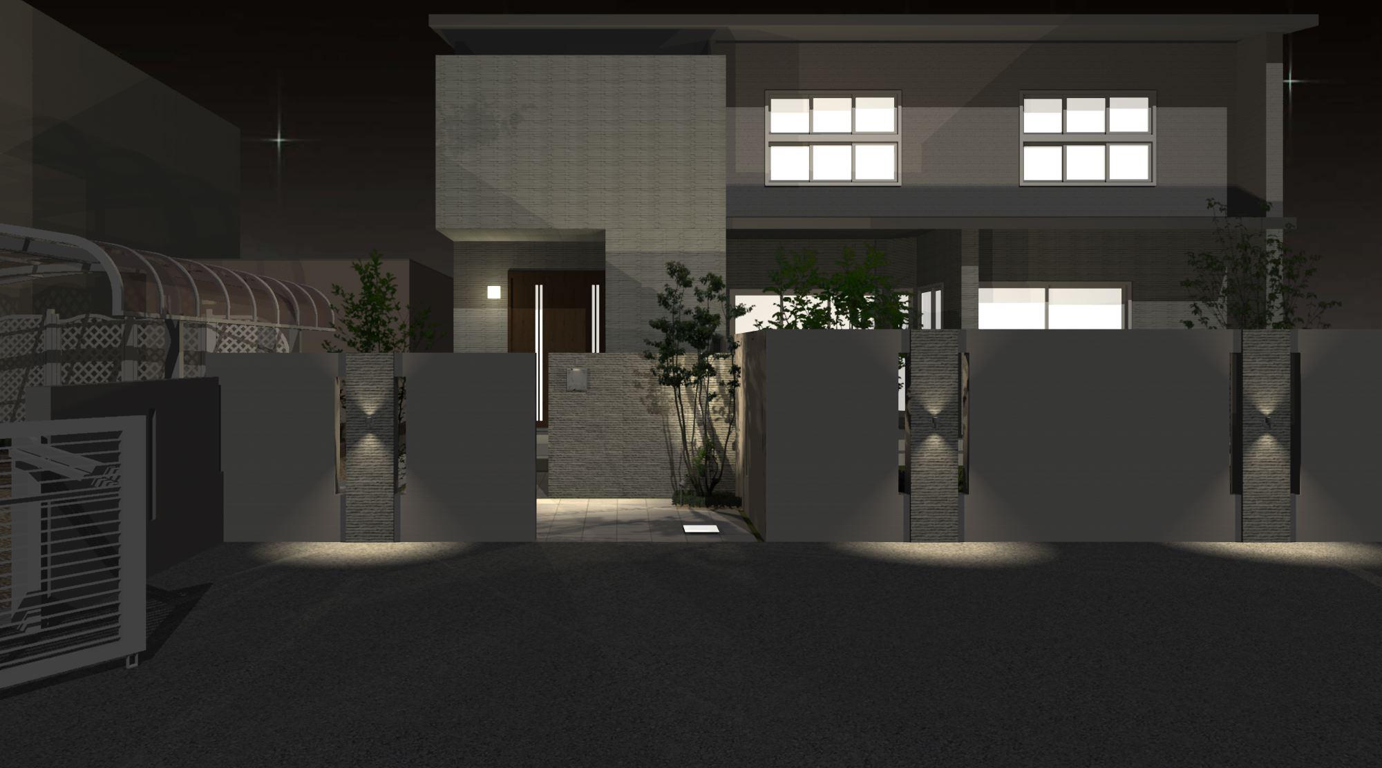 境界塀、ライティング、テラススペース、人工芝など