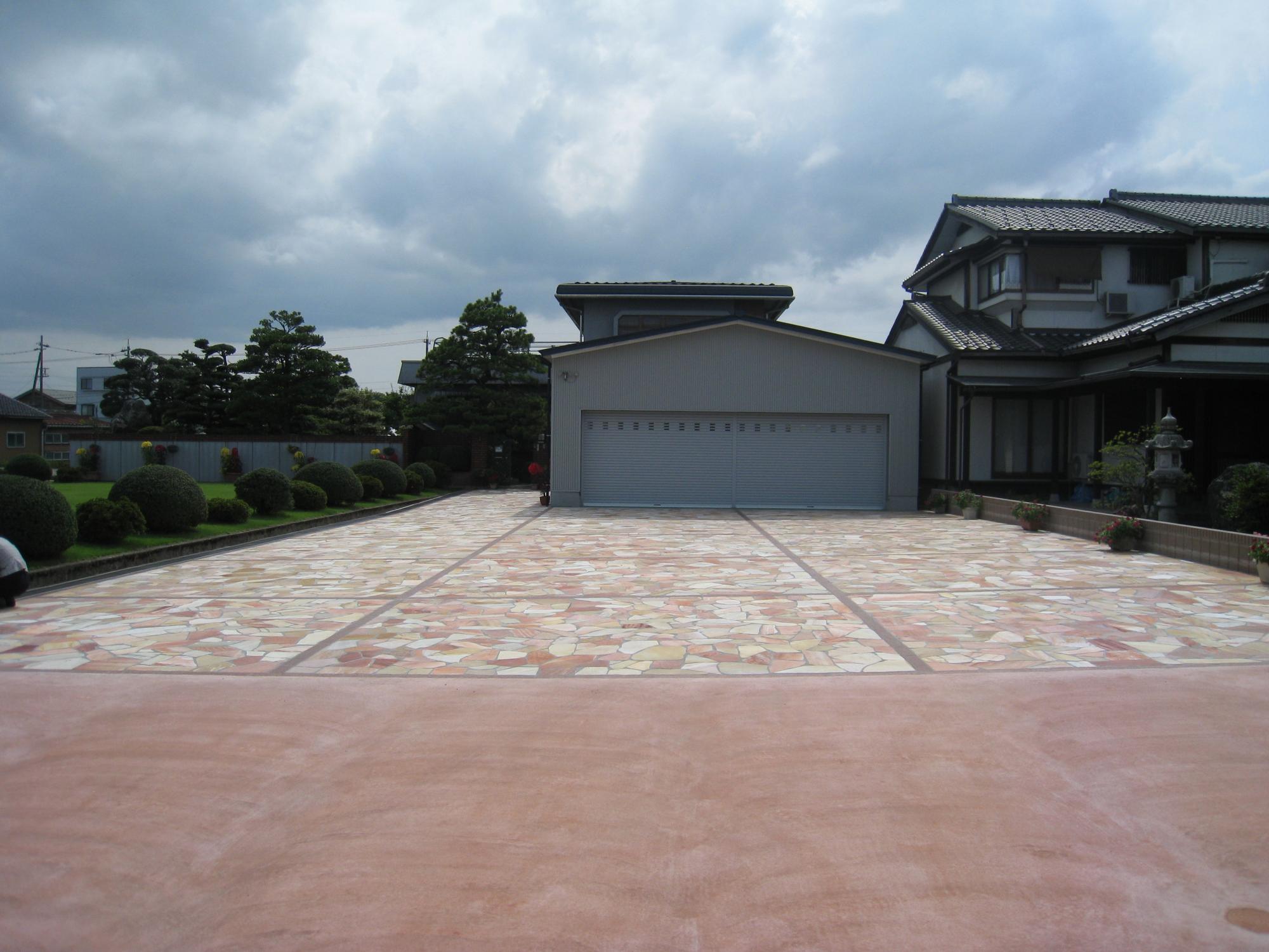 ■ 実例7 石貼りでダイナミックな駐車場に