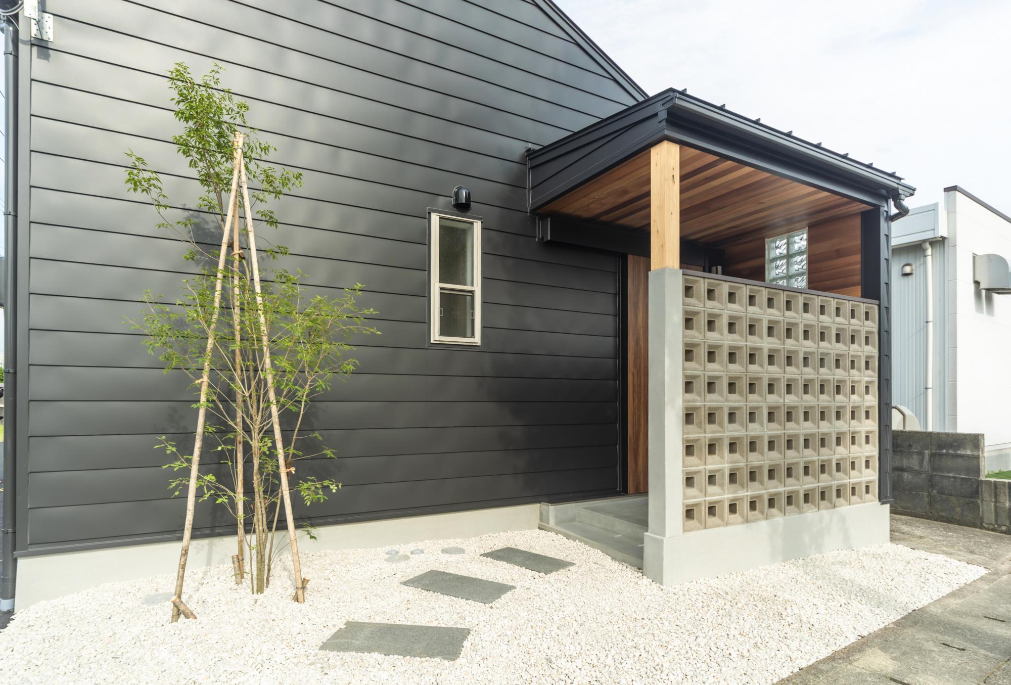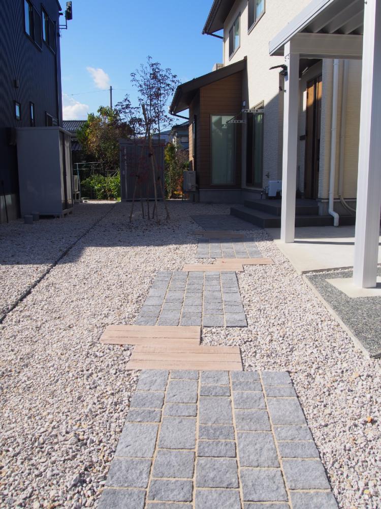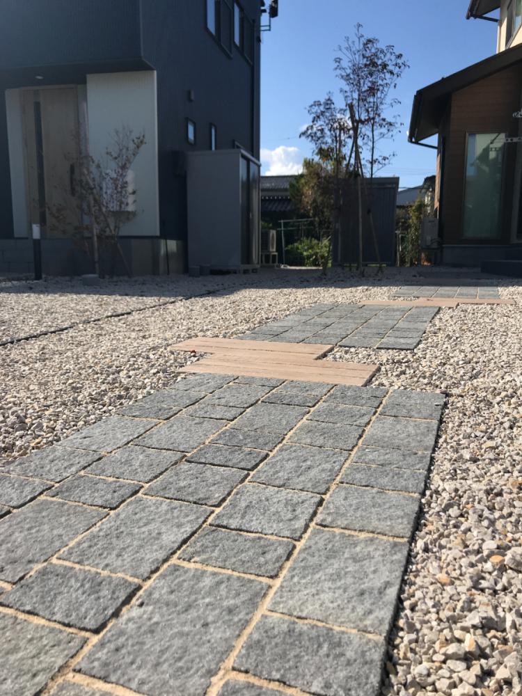 こちらは同じ素材でも色を変えることでオシャレなアプローチに仕上がっています。