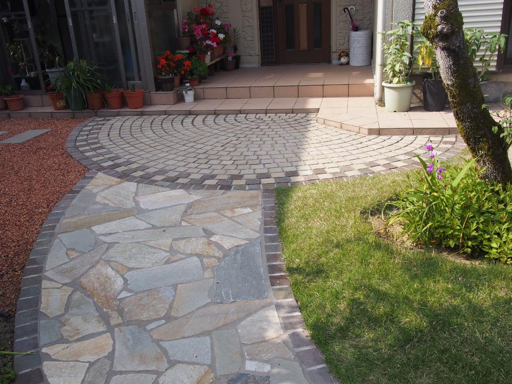 こちらは敷石とコンクリートを組み合わせた例です。