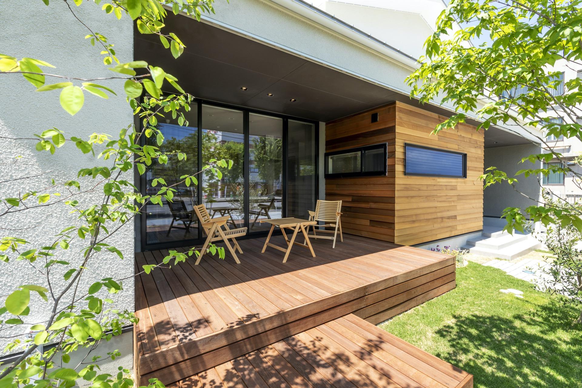 ウッドデッキから枕木、レンガ、庭木に至るまで、エクステリアには、様々な建材が使用されます。建材に使われる素材によっては、経年とともに変化することも。それぞれ設置する前に自分の目で確認することが大切です。